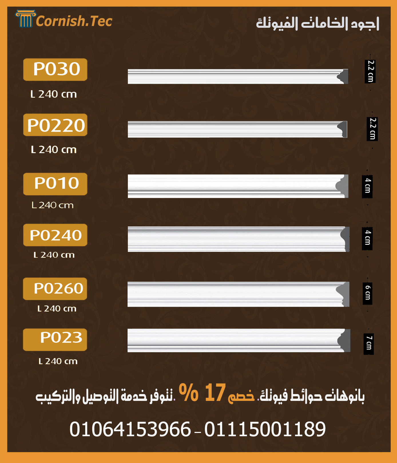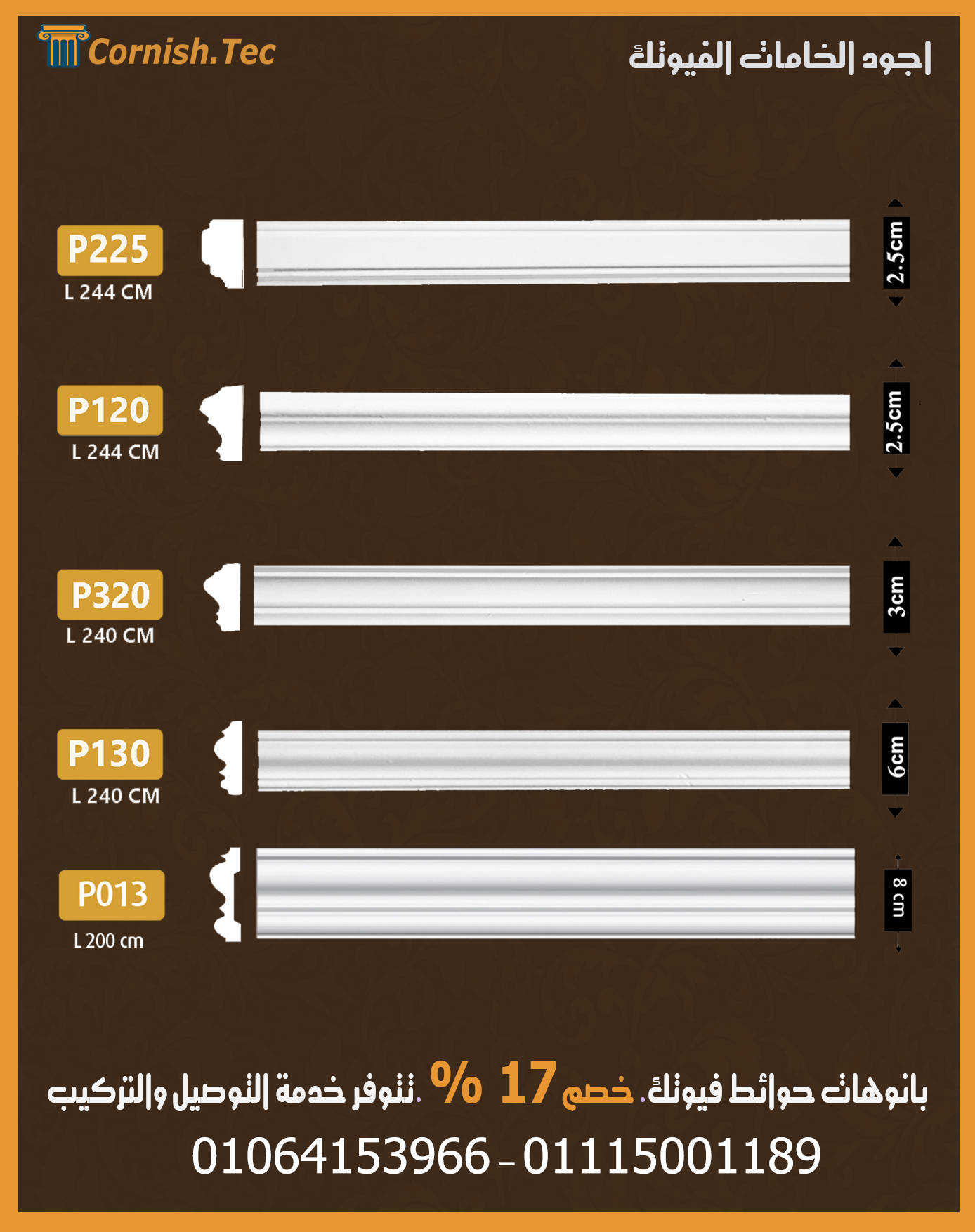 بانوهات الحوائط فيوتك هي الاختيار المثالي لكل من يبحث عن لمسة فخامة وتنظيم لجدرانه. مصنوعة من بولي يوريثان فوم مضغوط أو بوليسترين مضغوط، وهي خامات خفيفة الوزن، قوية، مقاومة للرطوبة، الحرارة، والصدمات، مما يجعلها بديلًا عصريًا وأنيقًا للجبس التقليدي مع عمر افتراضي طويل.