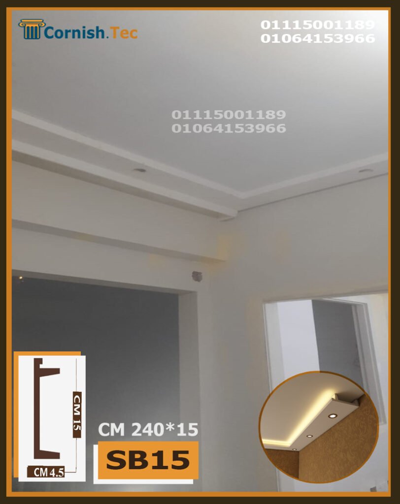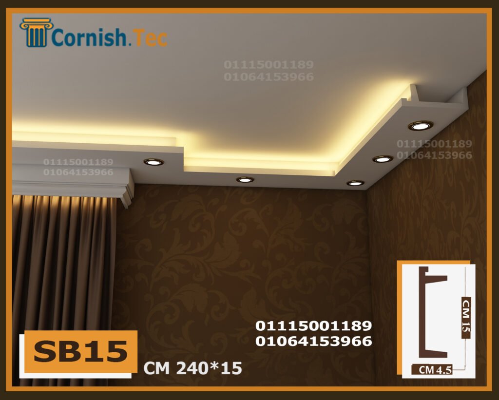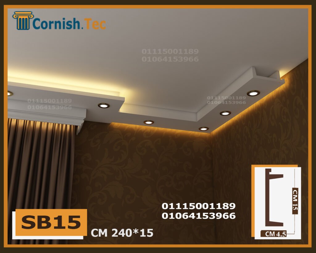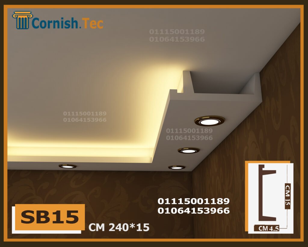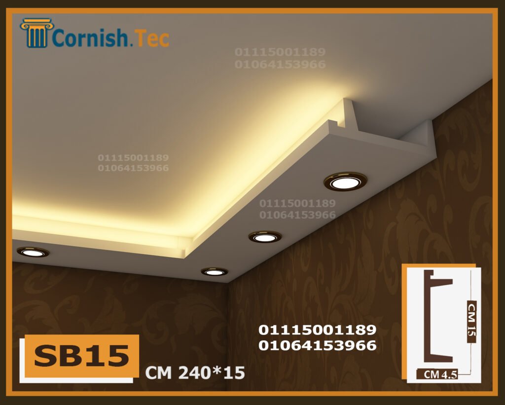 كرانيش سبوت لايت بديل جبس بورد – كود (SB15) تمنحك تصميمًا عصريًا. ضع شريط الإضاءة في الأمام والمنطقة غير المخصصة في الخلف، وأضف سبوتات لتحصل على إضاءة رائعة.