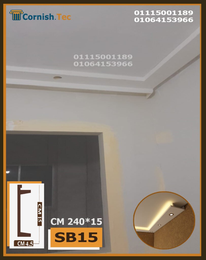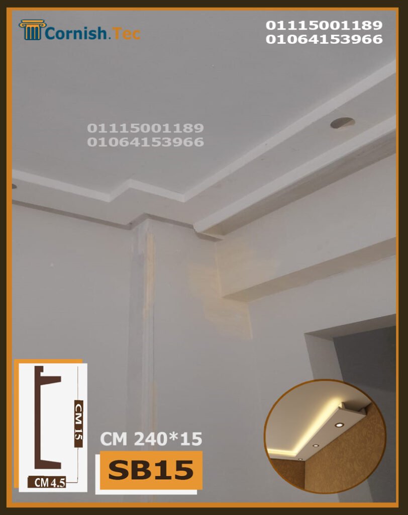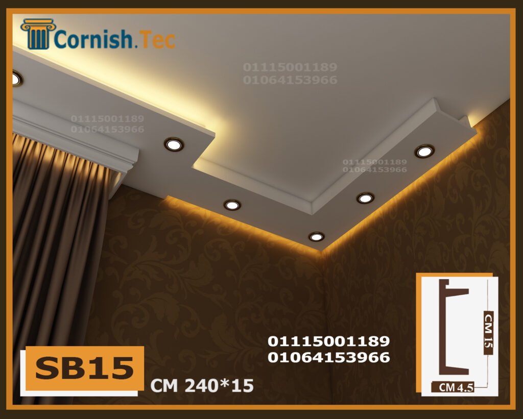 كرانيش سبوت لايت بديل جبس بورد – كود (SB15) تمنحك تصميمًا عصريًا. ضع شريط الإضاءة في الأمام والمنطقة غير المخصصة في الخلف، وأضف سبوتات لتحصل على إضاءة رائعة.