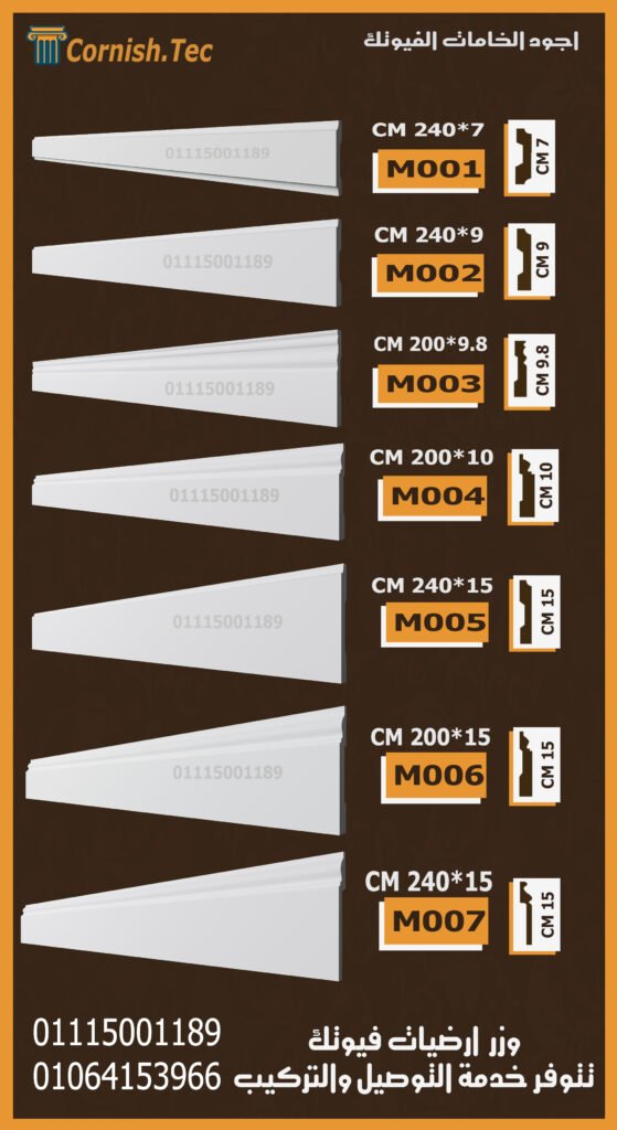 في كرانیش تك، بنقدّم لك مجموعة مختارة من موديلات وزر الأرضيات، مصنوعة من أفضل الخامات لضمان المتانة والشكل الجمالي في كل مشروع 🏗️ 💡 الأسعار تنافسية، والمقاسات متنوعة لتناسب كل احتياج، وكمان خصم إضافي 8% على إجمالي الفاتورة للمشروعات والتوريدات الكبيرة 🎯